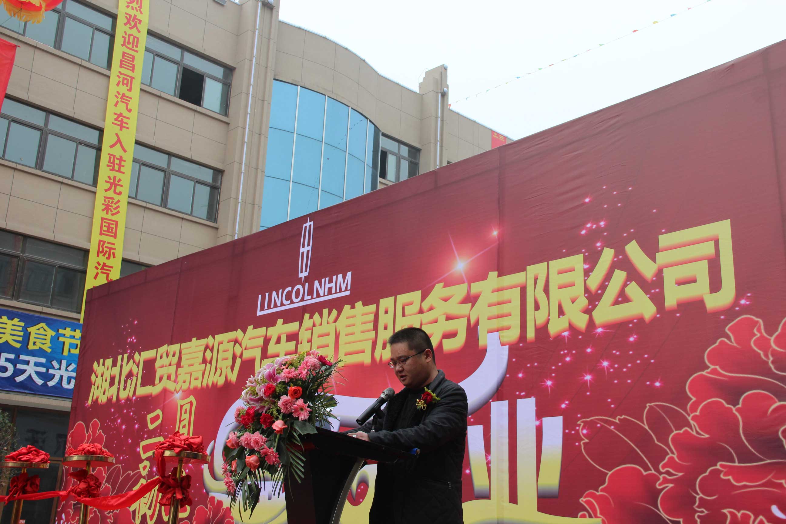 湖北汇贸嘉源汽车销售服务有限公司董事长周杰向到场的消费者和媒体朋友发表了热情洋溢的讲话。周总表示,作为林肯汽车湖北总代理,他对襄阳汽车市场未来的发展非常看好,因此才选择了将总展厅开设在光彩国际汽车城这个襄阳新兴的汽车产业大市场,周总更在现场承诺将秉承“诚信务实 追求卓越”的理念,全心全意为信赖和选择林肯汽车的广大消费者做好服务。