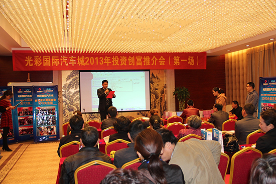 襄阳光彩国际物流产业投资有限公司副总经理梅泽权先生代表光彩国际汽车城向参加会议的各位投资精英们表达了热情洋溢的欢迎,并向大家详细介绍了光彩国际汽车城的建设情况。