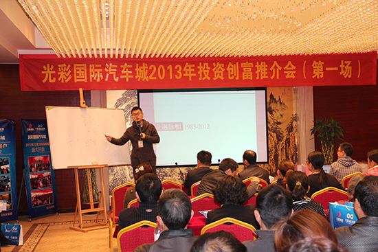 随后由上海弛张知天行地产机构董事长刘翀云先生由浅入深地与各位投资精英们分析了当前全球的经济形势和投资策略,刘总独特精辟的分析引起了在场所有人的强烈共鸣,刘总向大家重点推荐了襄阳光彩国际汽车城,并大大肯定了光彩国际汽车城从前期规划到后期运营的优势所在。听完刘总的精彩讲话,许多投资精英们都受益匪浅,对光彩国际汽车城的前景也更看好,通过和现场销售人员的细致沟通,当场就有十多位客户加入了光彩大家庭。