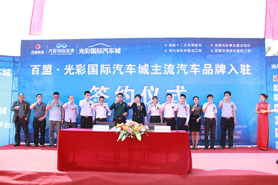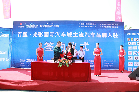 5月1日,晴空万里,百盟·光彩国际汽车城主流汽车品牌入驻签约仪式在诸葛亮文化广场隆重举行,在襄阳日报、襄阳晚报、襄阳周刊、襄阳广播电视台等多家襄阳主流媒体和现场广大市民的共同见证下,光彩国际汽车城副总经理李庆珍女士分别与奔驰、凯迪拉克、雷克萨斯、雪佛兰、一汽丰田、一汽大众、一汽马自达、一汽奔腾、开利星空豪车馆、金大道豪车馆、江淮汽车、长安汽车、庆铃汽车、宝骏汽车等部分主流汽车品牌代表进行了入驻签约,标志着光彩国际汽车城的建设和招商已进入到全新的发展阶段。