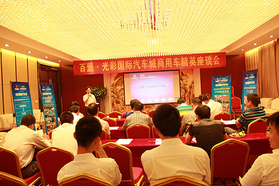 大家欢聚一堂、谈笑风生,在认真听取了光彩国际汽车城招商总监龙经理关于光彩国际汽车城建设和招商最新进展的介绍后,与会的商用车精英们都表现出了浓厚的兴趣。