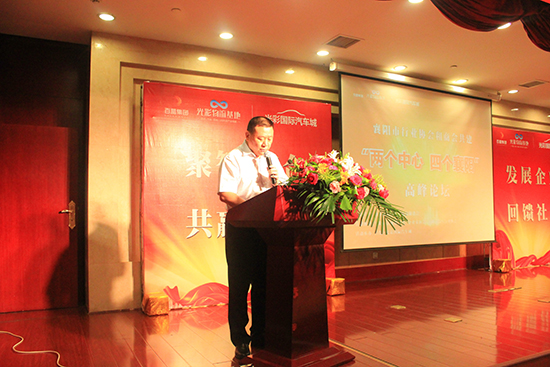 百盟集团副总裁、光彩国际汽车城总经理、襄阳市汽车行业协会执行会长俞业钊同志代表此次论坛的承办方向与会的领导和嘉宾们发表了热情洋溢的欢迎辞。俞总讲到,“发展企业 回馈社会”一直以来都是百盟集团最真实的精神写照,光彩国际汽车城全力支持襄阳市委市政府“两个中心 四个襄阳”的伟大号召,愿与各大行业协会和商会的领袖和精英们精诚合作、团结一心,共同为建设更繁荣、更美好的襄阳贡献自己的力量!