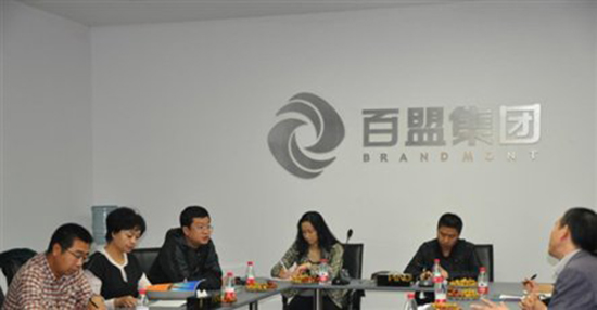 王副行长先后参观考察了中国光彩襄阳工业园、百盟华中光彩大市场,随后一行来到百盟集团总部营销企划中心会议室展开交流。